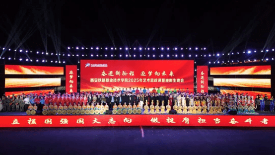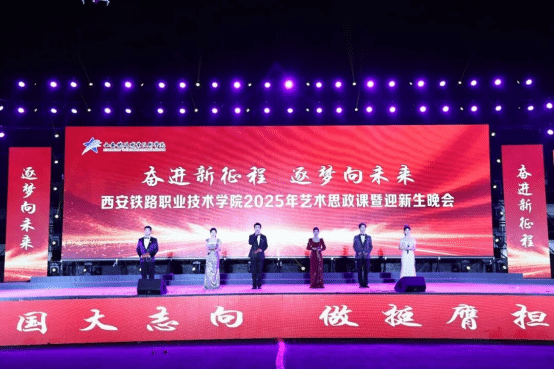 10月22日晚,西安铁路职业技术学院“奋进新征程·逐梦向未来”2025年艺术思政课暨迎新生晚会在学院港务校区运动场盛大举行。学院领导班子、各院部处室负责人、教职工与2025级5500名新生齐聚一堂,线上同步直播,以艺术为媒、以思政为魂,共同开启了一场沉浸式的“入学第一课”。