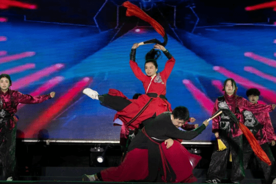 电气工程学院武术社与罗欣瑶老师的武术表演《剑砺锋芒,刀锋蕴力》,刀光剑影间尽显青春热血,彰显了新时代青年的拼搏精神。