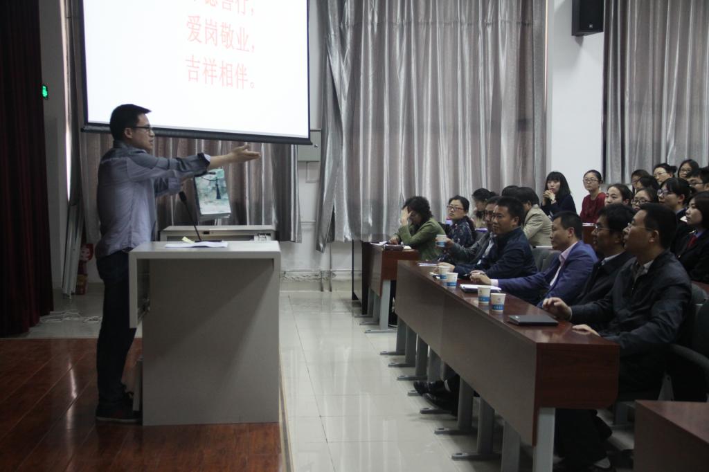 4月19日,机电工程学院党总支在机电楼阶梯教室开展道德讲堂活动,学院党委宣传部部长张家琪、院团委书记张治平、机电工程学院院长代礼前等与该院200余名师生一起参加活动,道德讲堂由辅导员陈广勇主持。
