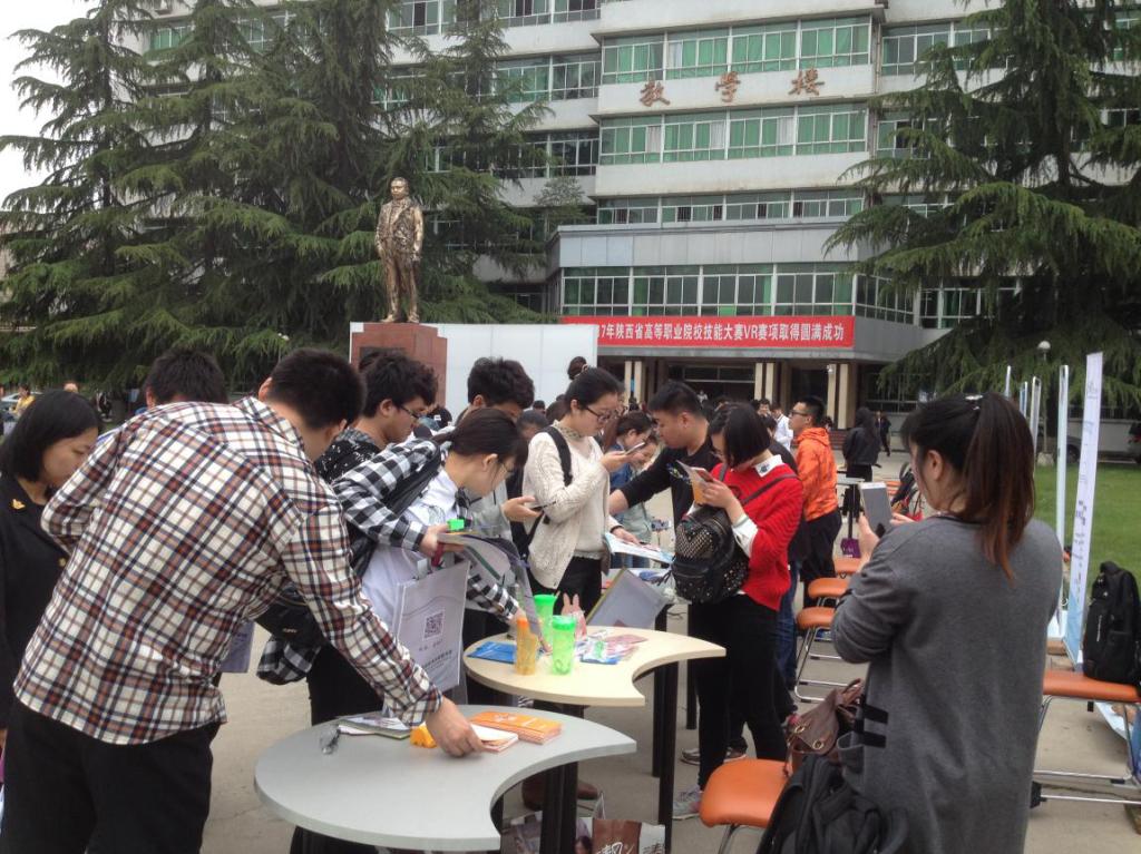 此次活动,主要以移动版数字资源为宣传对象,涵盖了考试题库、音频视频课及电子期刊、电子图书等资源,维普、中国知网、银符、新东方、博看等12家数字商参与其中。数字商通过展架、宣传页等方式对各自资源和针对2017年读书月开展的活动向师生进行了详细地讲解,并分发各类学习用品。过往的学生纷纷驻足咨询并体验,同学们对各类资源,特别是对博看数字期刊、超星“云舟”知识竞答以及森图2017“互联网+”就业创业知识大赛等资源和活动产生了浓厚的兴趣,同学们即刻用手机扫描展架上的二维码,下载APP参与活动。