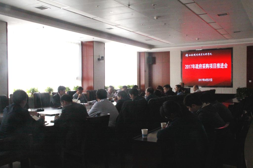 为确保完成市教育局、市财政局提出的在11月底政府采购项目完成率达到92%以上的任务,依照学院《2017年经费支出预算和项目实施安排的通知》精神,4月27日,计划财务处在办公楼五楼第三会议室召开了政府采购项目推进会,学院院长田和平,副院长邓耀斌、翁谦锁、赵六杰及各项目处室负责人参加会议。会议由计财处处长吴领合主持。