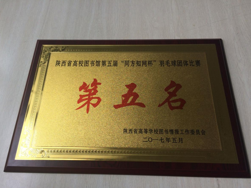 我院图书馆全体队员热情高涨,在与杨凌职业技术学院、陕西服装工程学院及西安航空职业技术学院的几场女双、男双及混双的比拼较量下斗志昂扬,奋力拼搏,最终取得了团体赛第五名。