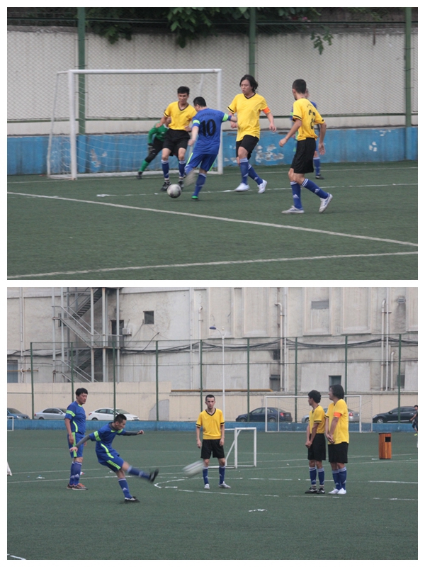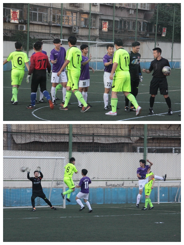 我院在小组赛中首轮迎战西安高新科技职业学院,轻松取得三个积分。第二轮经过顽强奋战,与陕西师范大学携手挺进淘汰赛。淘汰赛中,我院对阵以小组赛全胜,D组第一名成绩出线的西北农林科技大学。我院代表队针对对方几名新疆籍学生体能优势明显,传接球配合娴熟的特点制订了以稳健防守为主,利用跑位拉扯空当形成进球的战术。比赛中,我院师生以严密流畅的攻防转换,与对方打出了一场激烈的拉锯战,比分反复赶超,终场哨响时以2:2的比分进入点球环节。在此届比赛唯一的一场点球大战中,双方体能都已达到极限,但我院师生以铁一般坚强的意志品质,以3:2的比分最终拿下了比赛。半决赛中又遇陕西师范大学,我院代表队以每球必争、永不放弃的体育精神1:4惜败对手。