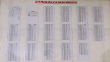通过开展捐款活动,我院教职工用实际行动传递了爱心,用爱心诠释了社会责任,为学院持续推进脱贫攻坚工作凝聚了共识和力量。捐款情况分别在学院三个校区进行了公示。