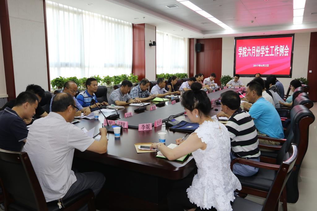 会上,党委学生工作部通报了五月份工作情况,提出暑假前学生管理工作思路和重点任务,对2017届毕业生离校工作进行了安排布署。招生就业办公室通报了2017届毕业生就业工作情况和2018年招生工作安排。院团委总结了五月份工作,安排了暑假前工作计划。各二级学院党总支根据自身实际汇报了五月份的工作,列举了期末工作安排。