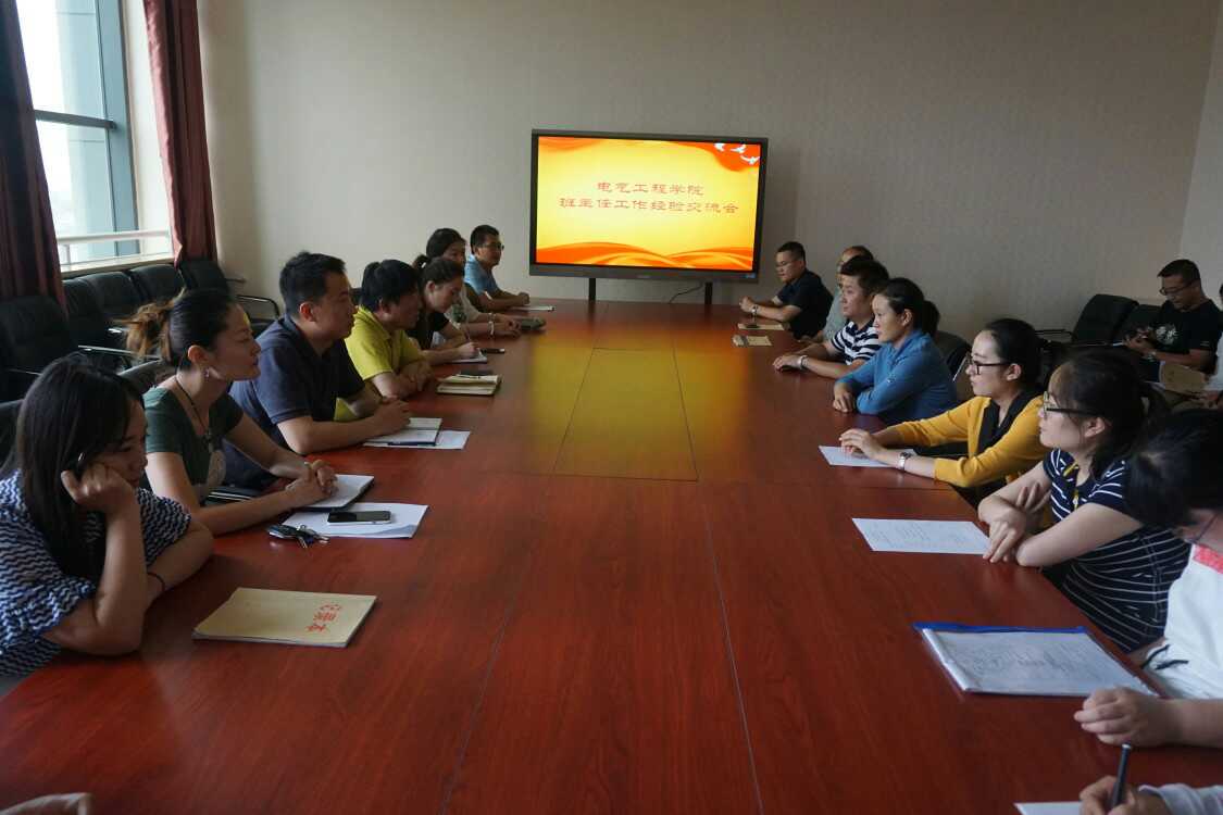 6月7日下午,我院电气工程学院班主任经验交流会在电气工程学院813教室召开。电气工程学院党总支书记任建国,全体辅导员、班主任参加会议。会议由电气工程学院学工办主任马纪主持。