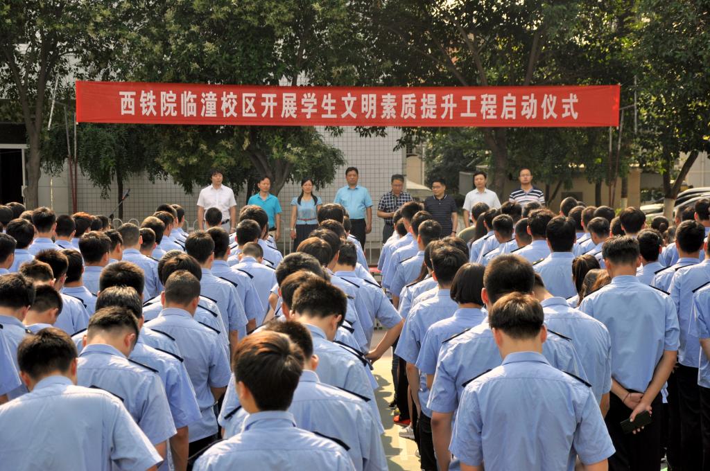为进一步提高校区精神文明建设水平,提升校区学生思想道德和文明礼仪修养,使学生养成自觉践行文明礼仪、弘扬传统文化的良好习惯,6月15日下午,临潼校区实施学生文明素质提升工程启动仪式在北操场隆重举行。