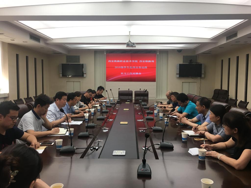 6月15日下午,学院在自强校区第三会议室召开2018届学生赴西安客运段实习工作对接会,与西安铁路局就学院2018届首批赴西安客运段实习学生的实习工作进行对接协商。西安铁路局西安客运段副段长潘永胜,劳人科、职教科负责人,我院教务处、交通运输学院、电子信息学院负责人参加会议。教务处副处长张刚毅主持会议。