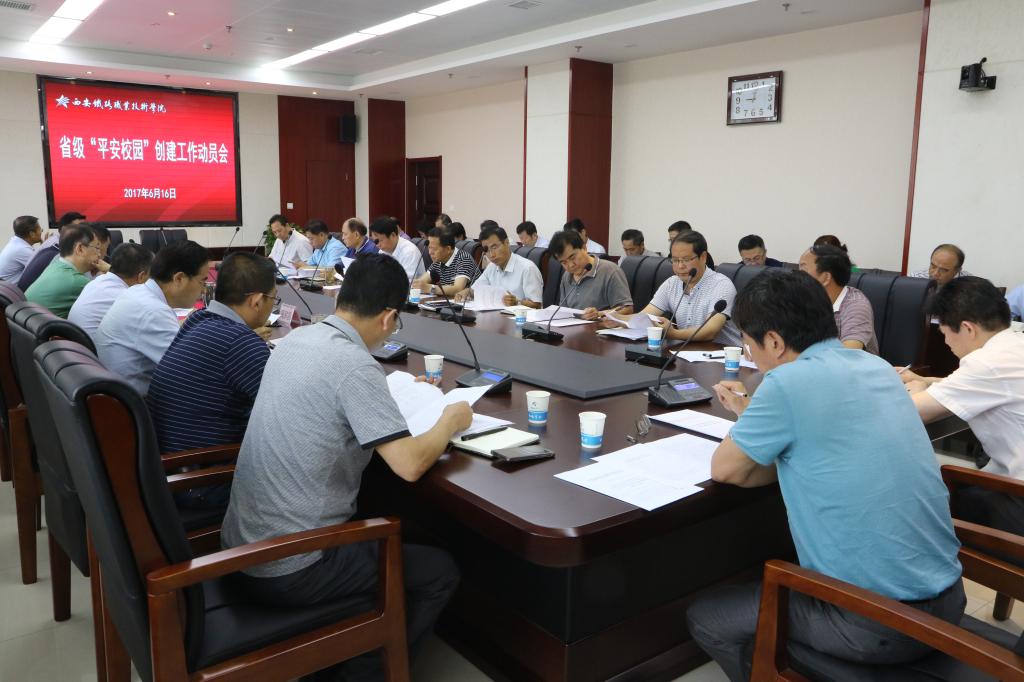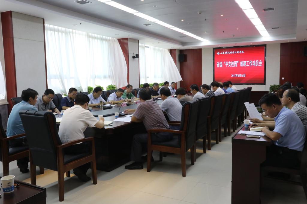 6月16日,学院召开“平安校园”创建工作动员大会,学院领导班子出席会议,各二级学院和部门负责人参加会议,会议由学院党委副书记康敬远主持。