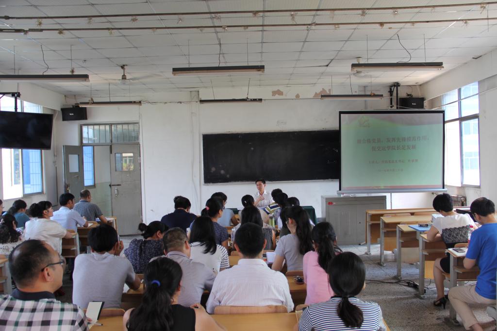 6月21日学院交通运输学院党总支书记仵崇智在自强校区办公楼为交通运输学院全体教职工党员作“做合格党员,发挥先锋模范作用,促交运学院长足发展”专题党课。