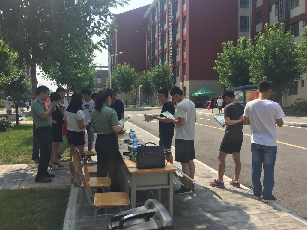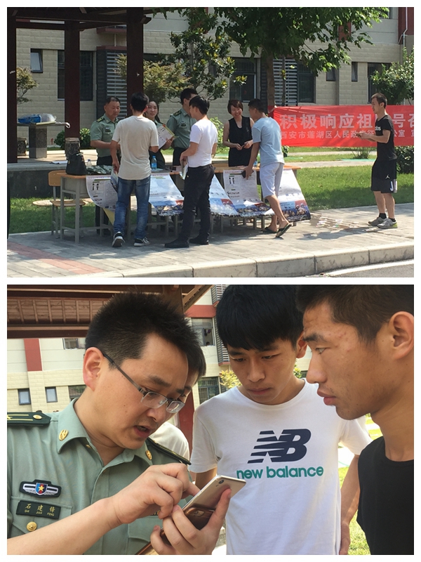 6月21日下午,学院党委学生工作部协同莲湖区武装部征兵办在学院港务校区举行2017年大学生应征入伍宣传活动。
