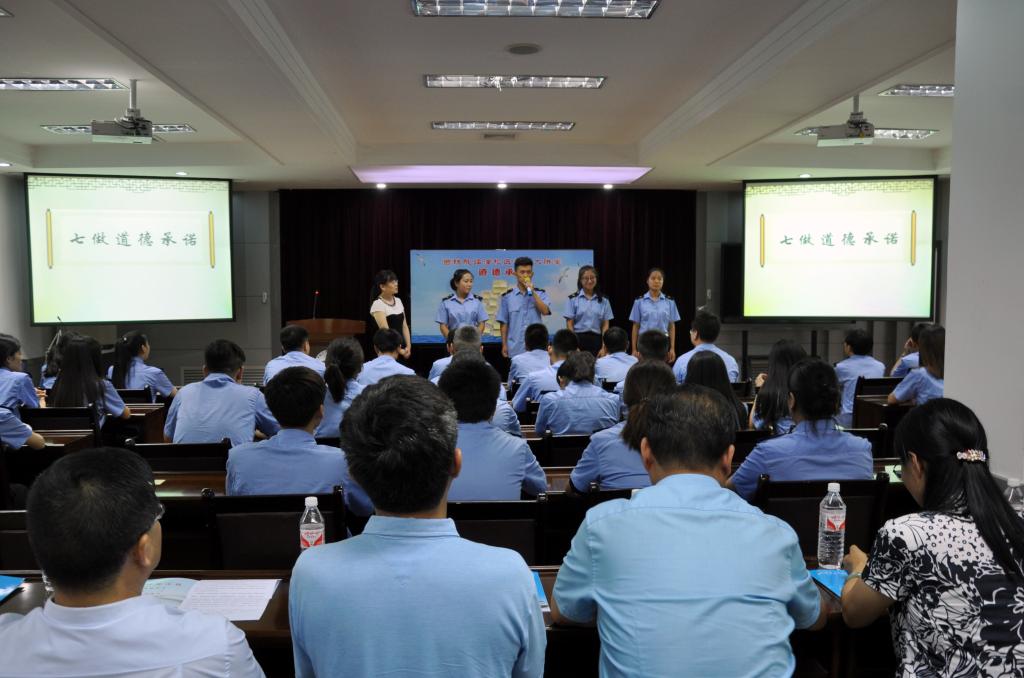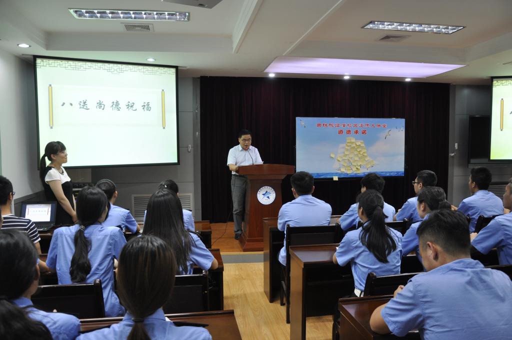 6月22日,临潼校区举办了以“端正学习态度,让梦想起航”为主题的道德大讲堂活动。学院党委宣传部部长张家琪、临潼校区主任熊奇、副主任王秀丽、朱栋夫,相关科室负责人及工程造价1601班全体学生参加活动。活动由校区基础教研室潘欢欢老师主持。
