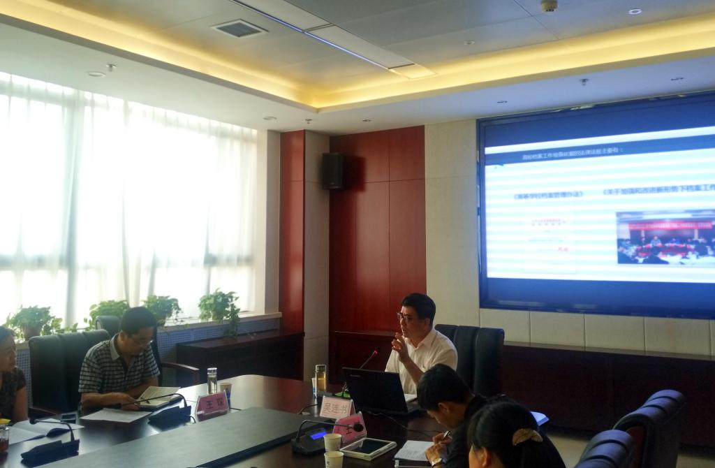 吴连书理事长是中国高校档案研究会常务理事、副秘书长;陕西省档案学会常务理事、副理事长;陕西高教系统档案学会理事长。他从陕西高校档案工作检查依据的法律法规、陕西高校档案工作存在的问题、解读档案检查标准的重点、通过检查推动陕西高校档案工作的开展这四个方面内容入手,剖析陕西高校档案工作现状,并就学院的档案工作开展给予指导,建议学院要进一步加强档案工作“三个体系”建设,大力开展档案利用,为推动学院科学发展服务。