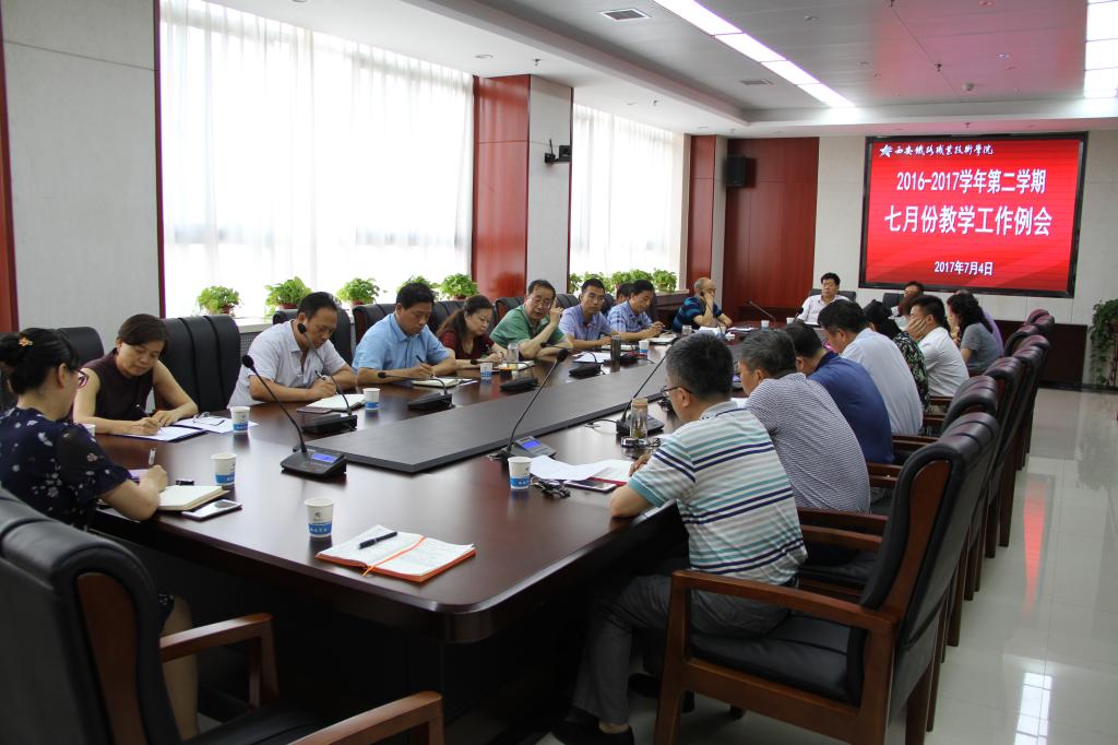7月4日,学院院长田和平主持召开7月份教学工作例会。学院教务处、教科研处、质量管理办公室、图书馆、现教中心、教师发展中心及各二级院部负责人参加会议。