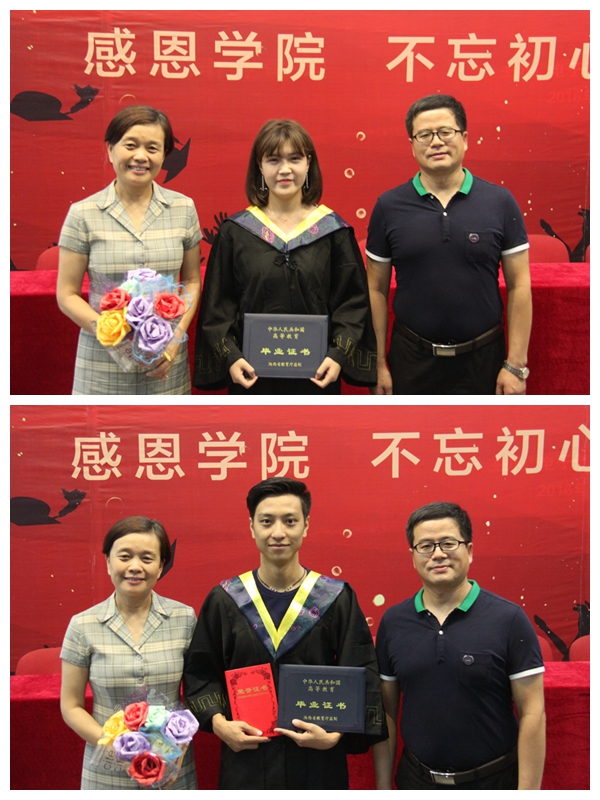 典礼结束后,每位毕业生同学上台与孙津平、张伟敏进行合影留念。