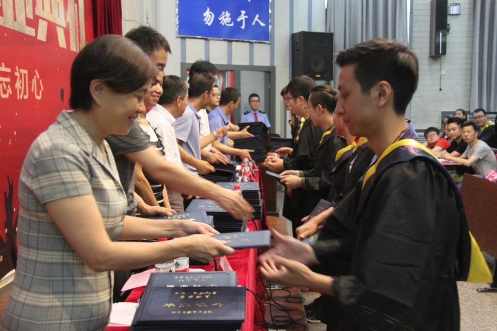 毕业典礼在雄壮的国歌声中拉开帷幕。首先由郭小莉宣读我院2017届优秀实习生的表彰决定。与会领导依次为获得2017届优秀实习生的10名毕业生颁发荣誉证书。