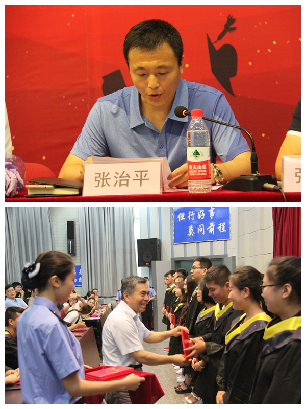 滕勇宣读该院2017届优秀毕业生表彰决定。与会领导依次为获得2017届优秀毕业生的28名毕业生颁发证书。