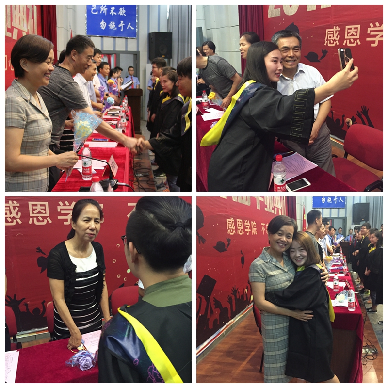 随后,学生代表以诗歌《别了,母校》表达对母校的依恋之情。同时毕业生代表把连夜折叠的手折花朵送给了三年里无私奉献的各位领导、辅导员以及老师,以表达对学院的感恩之情。