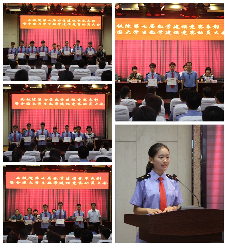 会上,孙明魁宣读了学院第七届数学建模竞赛的表彰决定;滕勇及各二级学院领导分别为获奖学生颁发荣誉证书;机电工程学院城轨机电的李璞代表全体参赛学生表态:拼弃杂念,认真培训,排除万难,拿下国一。