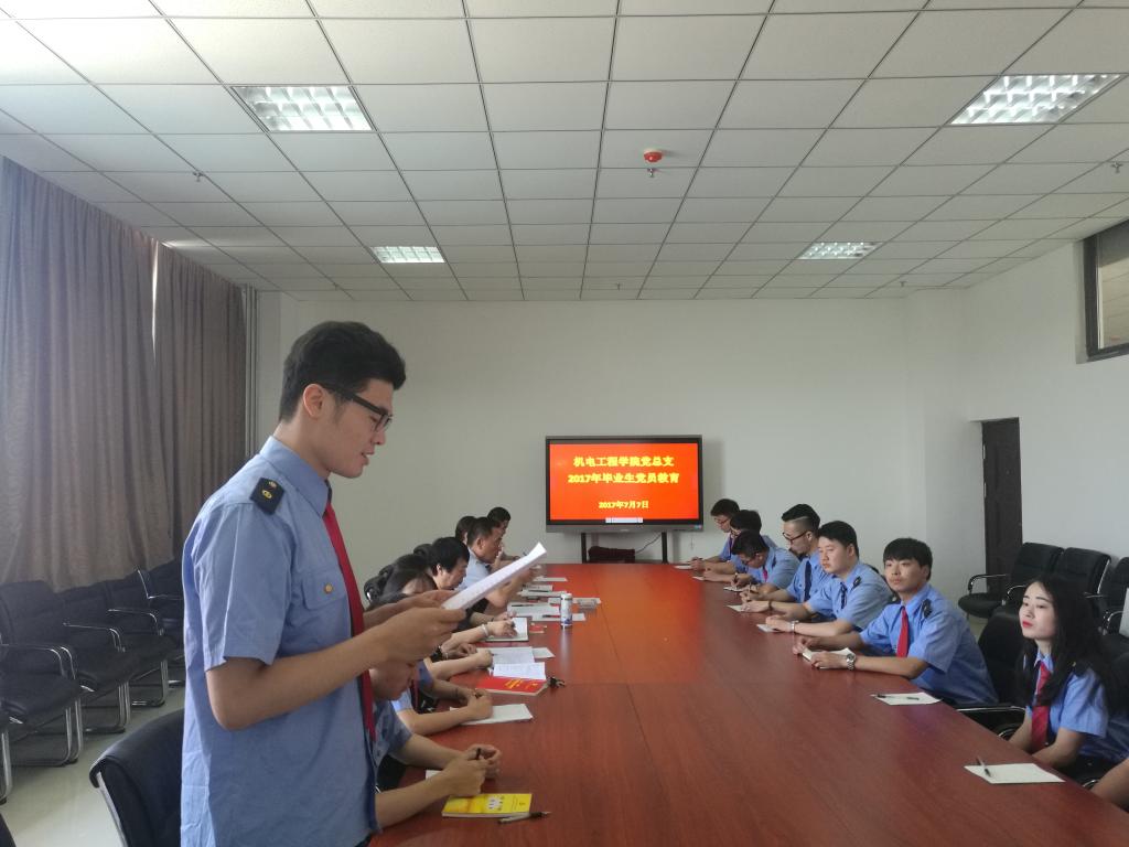 7月7日,在学院机电工程学院701会议室进行2017年毕业生党员集中教育。学生工作党支部党员参加本次集中教育。教育分三个环节进行。