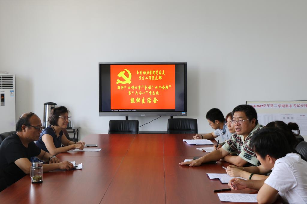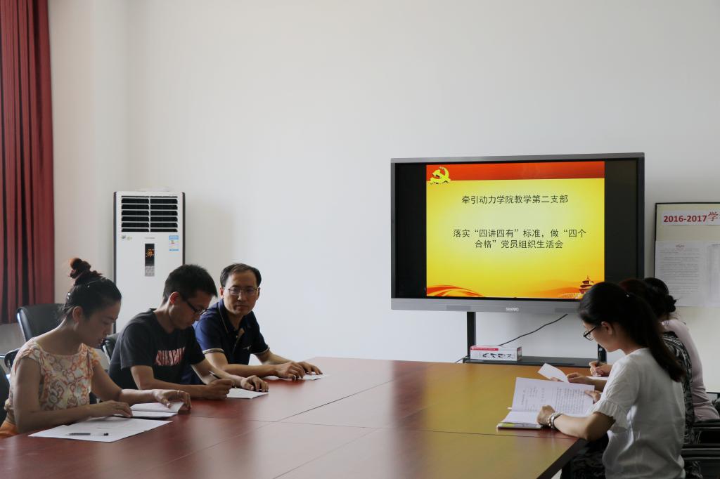 近期,根据学院党委《关于推进“两学一做”学习教育常态化制度化的实施方案》文件精神,学院牵引动力学院党总支要求各支部结合该院党建工作,认真开展以“践行‘四讲四有’标准,争做‘四个合格’党员”为主题的组织生活会,确保学习教育活动扎实起步、深入开展。