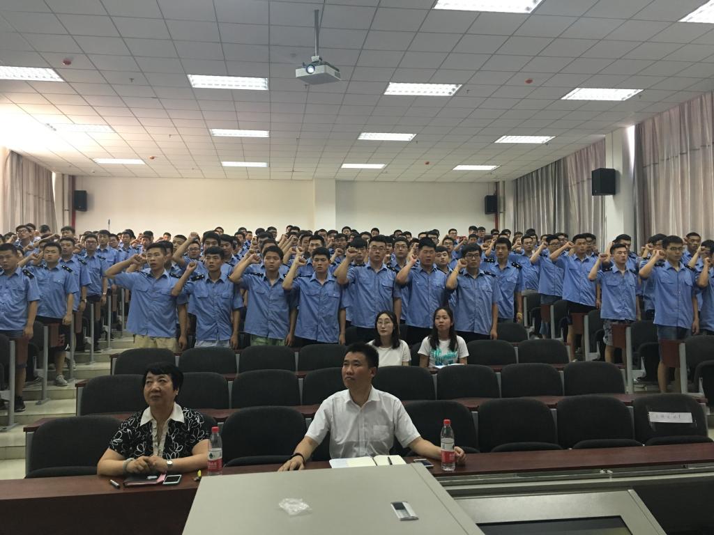 会议最后,全体同学起立,举起右手,由学生代表带领与会同学庄严承诺:珍惜实习机会,尊敬实习师傅,遵守实习纪律,吃苦耐劳,工作认真,保证完成实习任务,为西铁院增光。