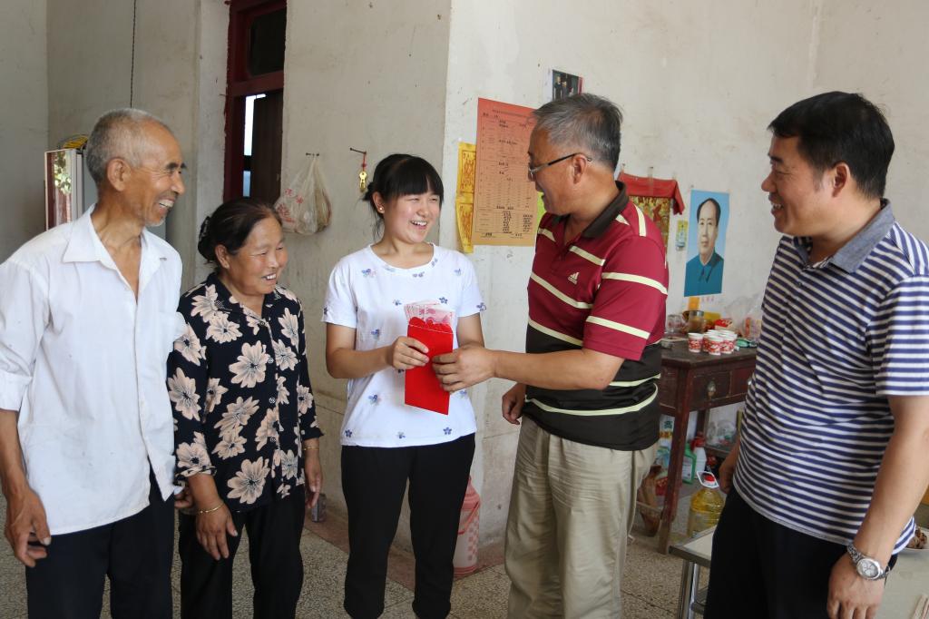 在贫困户张忠岐老人家中,学院领导首先仔细检查了精准扶贫“四书二卡一簿”,详细询问了学院根据老人家中实际情况制定的黑土猪养殖项目的准备情况,要求工作队要尽快将已订购的猪仔运回,让老人放心。学院领导还向老人送去了米面油、凉席、电风扇等急需的生活用品,并将两千元技能培训资金送到了老人的孙女张改丽手中,鼓励她要刻苦学习,熟练掌握脱贫致富的技能。