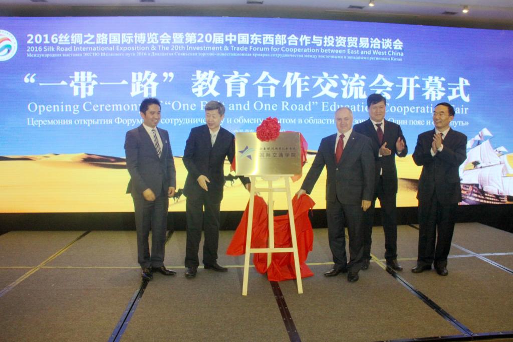 经陕西省人民政府批准,报教育部备案,由我院和俄罗斯圣彼得堡国立亚历山大一世皇帝交通大学合作举办的“国际交通学院”,于5月13日在“一带一路”教育合作交流会上隆重揭牌。国际交通学院致力于融合中俄两国轨道交通领域优质教育资源,提供优良的办学条件,实施双语教学,培养具有国际视野的轨道交通专业高素质技术技能人才。国际交通学院的成立将为我院国际化办学思路打下坚实基础,为学院朝着省内一流、国内知名高职院校目标贡献新的亮点。