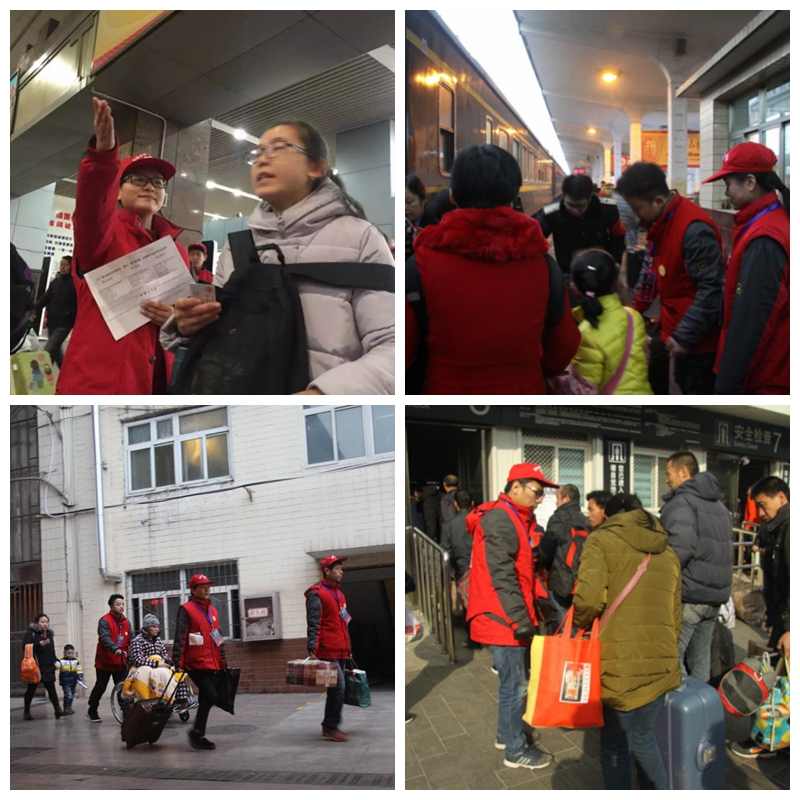 每天16:00-19:00,在车站广场,志愿者们头戴小红帽,身穿红色马甲,胸口处别着“服务志愿者”的胸牌。热情的服务每一位旅客。耐心的为旅客解释如何购票、取票、退票以及改签。手拿大喇叭维护车站的秩序以确保让每位旅客安全进站,每一声都是耐心,是关切,是热情;在候车大厅里,志愿者耐心为每一名旅客解答他们的问题,坚持用微笑服务每一名旅客,在拥挤不堪的候车大厅内为盲目的旅客寻找他们的候车室是他们的首要工作,主动帮助旅客提东西,主动询问旅客乘车时间等是他们必须会做的事情。