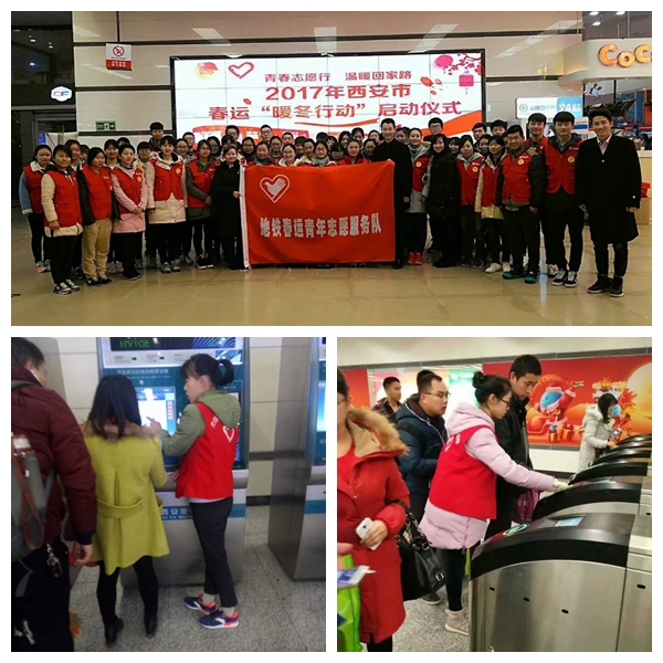 1月12日,我院组织20余名志愿者代表在地铁纺织城站参加2017年西安市春运“暖冬行动”启动仪式,在启动仪式中我院志愿者段沙沙代表西安市地铁志愿者进行了发言并与所有志愿者一起进行宣誓。