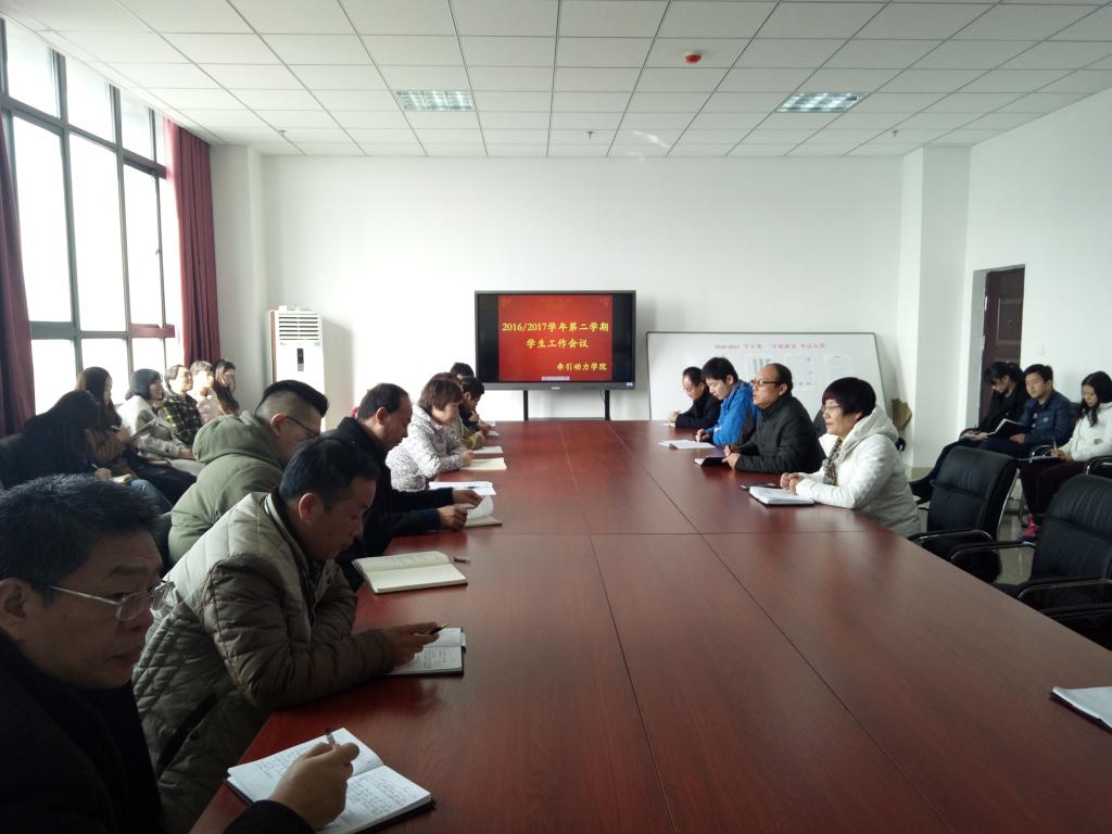 2月25日上午,牵引动力学院在7楼会议室召开新学期全体辅导员班主任大会,学工办全体辅导员、专兼职班主任50余人参加了会议。