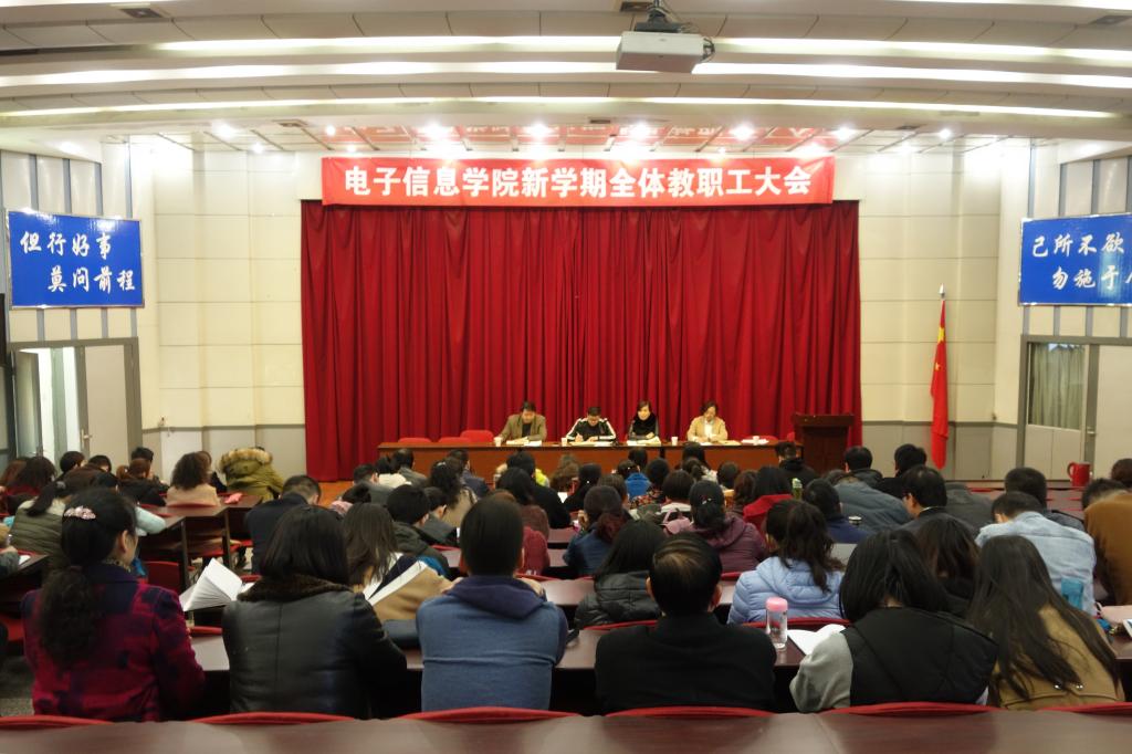 3月1号下午,电子信息学院在自强校区阶梯教室召开了2017上半年全体教职工大会,对2016年下学期的工作进行了总结并对本学期初的各项工作做了部署。会议由办公室主任马荣主持,全体教职工参与了会议。