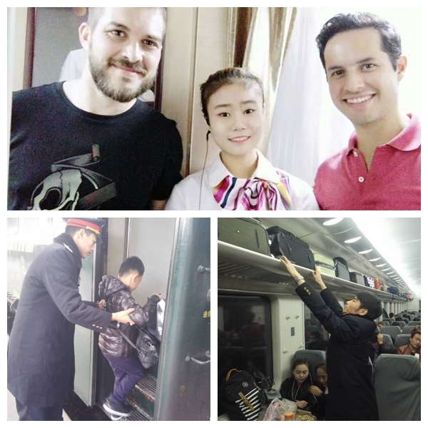 在Z43次列车实习的铁道1404班苏蕊同学,值乘中半夜巡视,发现旅客身体不适,及时为旅客找到药物并细心照顾;帮助一位旅客解决好随身物品的携带问题;认真负责为每位乘客核对身份认真换票;用简单的英语为外宾解答疑惑。这些看似细碎的事情,都被她处理的井井有条,获得旅客的称赞,春运期间共收到铁路总公司转来表扬两次。在西安开往青海西宁的k4099次列车上,该院铁道021426班的陈一博、张少辉同学是11号硬座车厢的实习乘务员。在值乘过程中,他们全程照顾一名全盲患者,并将该重点旅客与值班车长一起交由兰州车站工作人员。同学们细致细心的服务获旅客家人致电感谢。