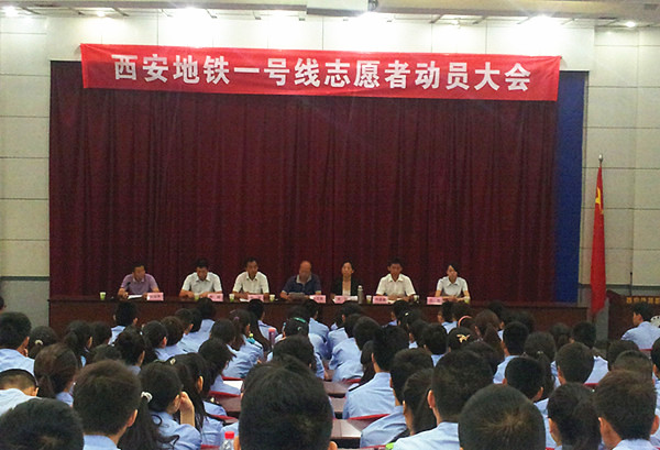 9月2日,“西安地铁一号线志愿者动员大会”隆重召开,拉开了我院430名青年志愿者服务西安地铁一号线开通运营的序幕。地铁公司培训部副部长袁媛、运营分公司人力资源部部长刘军莅临会议并讲话,我院交通运输系主任韩买良、院团委书记仵崇智参加会议并作动员报告。会议由校企合作处副处长张治平主持。