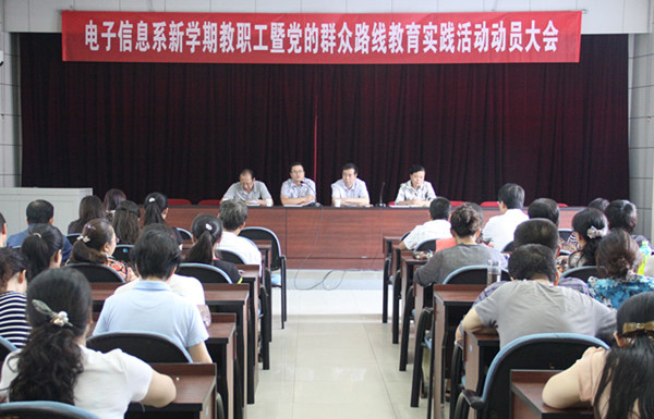 9月11日下午,电子信息系在大电教召开新学期教职工暨党的群众路线教育实践活动动员大会。院长田和平、组织部部长任治军及电子系全体教职工参加了会议。会议由系主任孙津平主持。