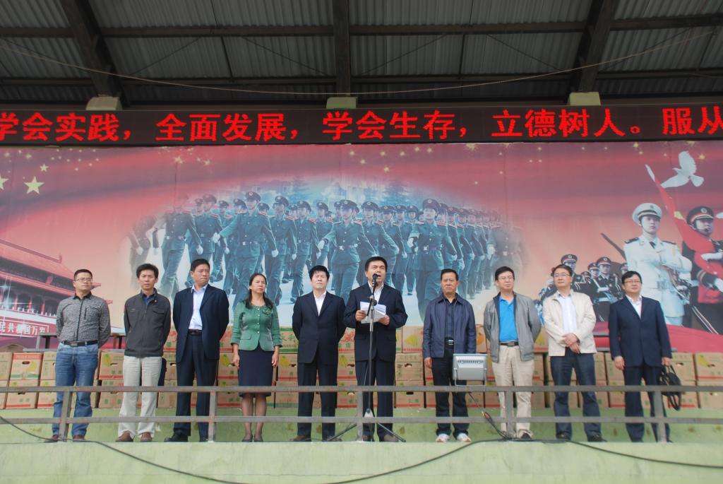 最后,在基地领导的陪同下,黄书记一行来到训练场,看望慰问正在接受训练的新生。在看过新生们的军训成果后,黄书记给学生做了鼓舞军心的讲话,并殷切的向新生们提出了四点希望:一是要切实增强对国家和民族的责任感,二要树立正确的人生理想和价值观念,三要着力培养高尚健全的人格和爱心,四要培养自强不息、厚德载物的精神。