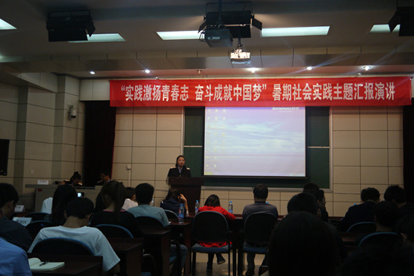 活动中,学生们结合暑期慰问孤寡老人、社会调研、打工经历、数学建模等社会实践的内容做了精彩的演讲,交流了感想、心得。其中电子系宋雅雯同学就暑期组队赴巴山暑期实践教育经历、范鹏昭同学就暑期参与数学建模大赛、雷颖玲同学就暑期参与社区调研、曹建涛同学就暑期打工经历的演讲,现场反响强烈。通过演讲,学生们进一步加深了实践意识、独立意识,提升了努力学习、报效祖国的动力。