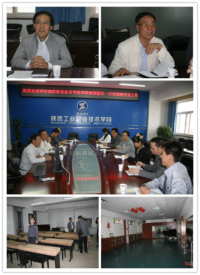 为了做好陕西省教育厅普通高等学校公共艺术教育评估的迎评工作,10月14日下午,由教学副院长邓耀斌带队,思政部主任景延鹏、教务处长滕勇、团委书记仵崇智、评建办主任马军强、毛特概论与美育教研室主任邢卫红等学院公共艺术教育评估迎评小组核心成员及美育教师李萍、思政部教务员赵建英一行8人赴陕西工业职业技术学院进行调研。陕西工业职业技术学院党委副书记王天哲,学工部部长王超联、团委书记闫军、公共艺术教育中心主任热情接待了我院的来访。