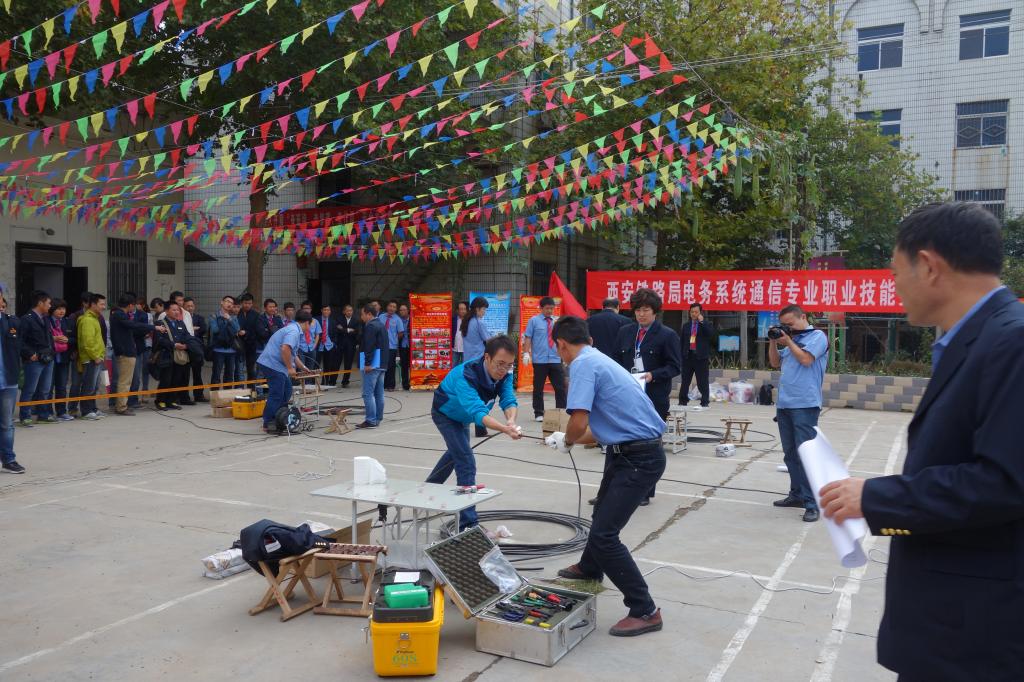 10月15至16日,西安铁路局电务系统光缆接续职业技能竞赛在西安通信段阎良通信车间举行,电子信息系主任孙津平带领通信技术及高铁通号专业相关教师一行9人赴阎良进行了现场观摩。