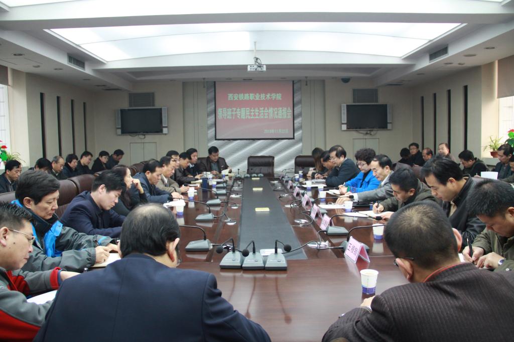 11月22日上午,学院召开了班子专题民主生活会情况通报会。党委书记安文中,院长田和平,党委副书记、纪委书记黄家昌,副院长邓耀斌、翁谦锁出席会议,西安市委第十三督导组组长张轶等同志到会指导。各党总支、系部处室负责人参加了会议。会议由田和平同志主持。