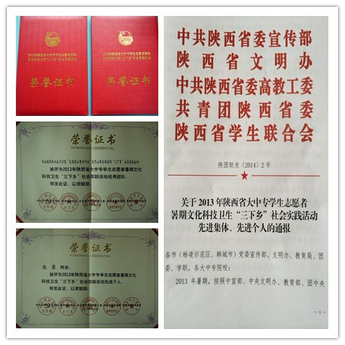 近日,由陕西省委宣传部、陕西省文明办、陕西省委高教工委、共青团陕西省委、陕西省学生联合会向有关部门联合发出《关于2013年陕西省大中专学生志愿者暑期文化科技卫生“三下乡”社会实践活动先进集体、先进个人的通报》(陕团联发[2014]2号)。本次表彰中由我院组织的“走进深山 坚守行业”赴巴山服务团获得2013年陕西省大中专学生志愿者暑期文化科技卫生“三下乡”社会实践活动优秀团队。我院牵引动力系学生张攀获得2013年陕西省大中专学生志愿者暑期文化科技卫生“三下乡”社会实践活动先进个人。