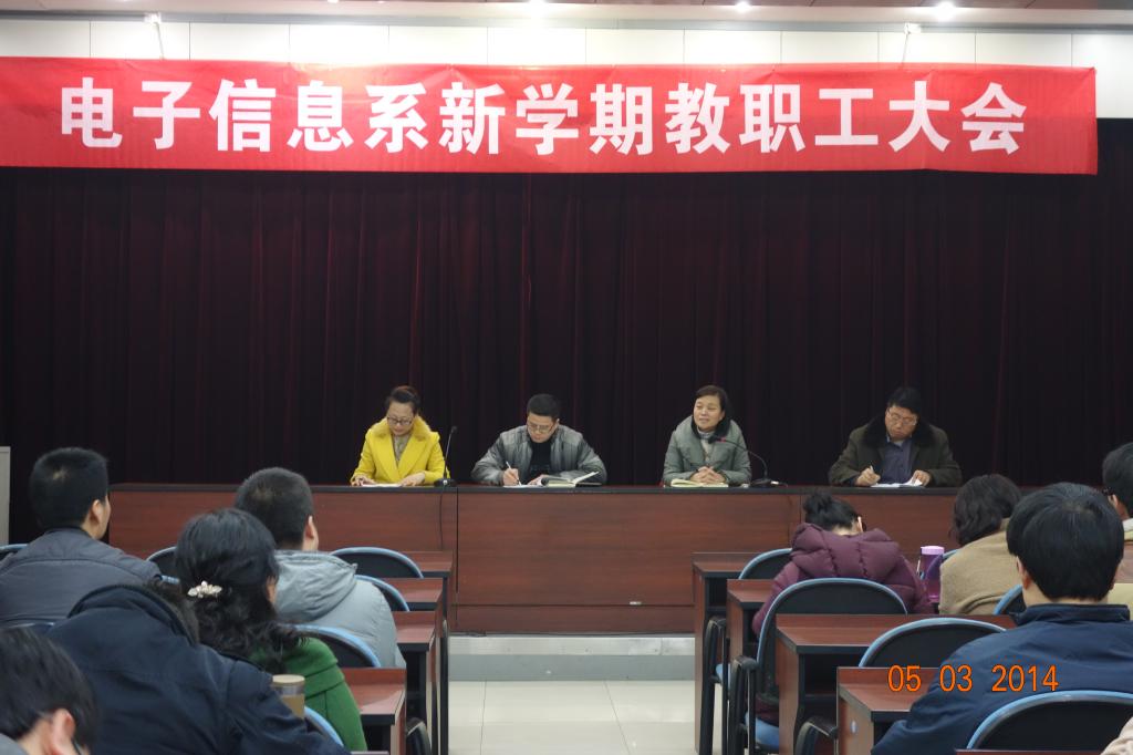 3月5日下午,电子信息系在实验楼二楼大电教召开了2014年新学期教职工大会,全系教职工参加了此次会议。
