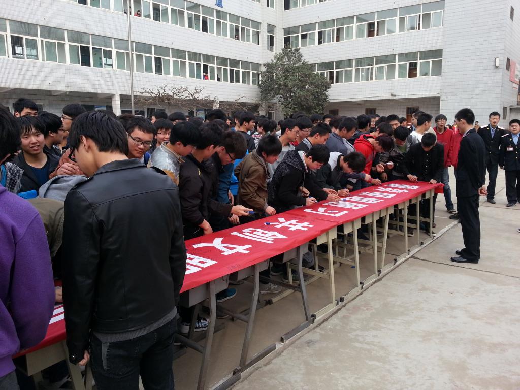 临潼校区结合教育部发布《关于在全国各级各类学校禁烟有关事项的通知》及提出的“严格限制在高等学校内吸烟”等一系列禁令,围绕校区开展文明卫生月系列活动,于3月19日下午,校区广大学生自发组织举办了“吸烟有害健康,共创文明校园”控烟签名活动仪式,正式拉开了校区控烟活动的帷幕。