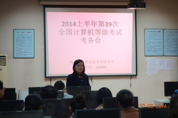 3月29日,副院长邓耀斌进行了巡考,就考风考纪问题、考务工作再次提出要求。西安市考试管理中心督察员赵洁在孙津平的陪同下,对我院全国计算机等级考试的组织与实施工作进行全面、细致的督查指导,赵洁对我院考试的总体工作安排以及考风考纪也给予了充分肯定。