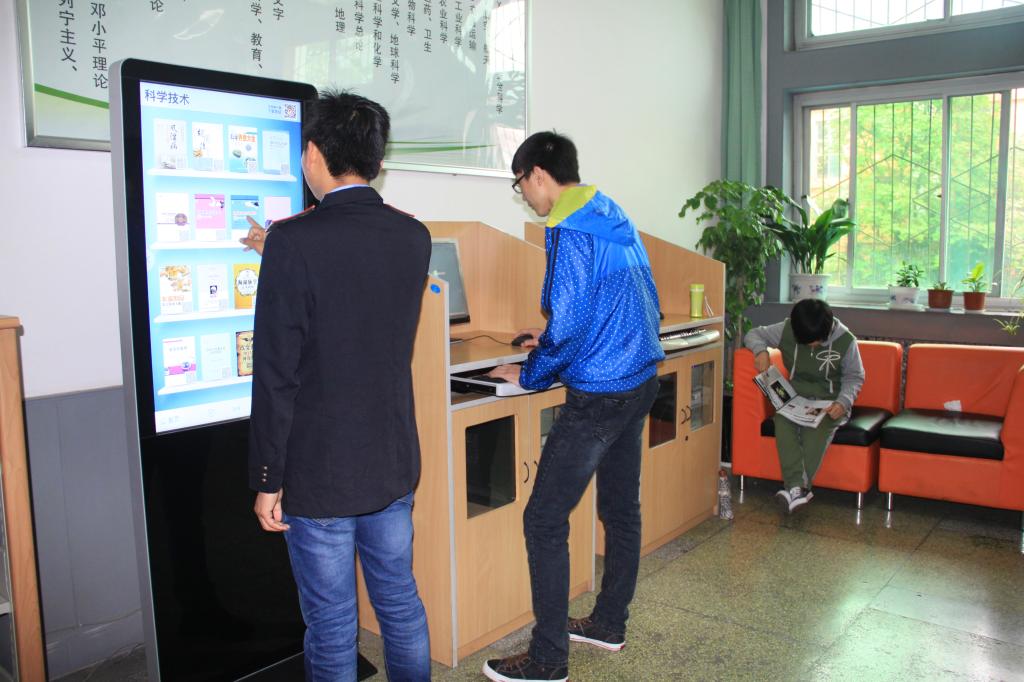 “手机扫一扫,新书随时看,阅读新感觉”。学院2014读书月之际,一个高大上的“家伙”——由北京超星公司提供的歌德电子书借阅机出现在图书馆二楼借阅大厅,引起了师生们的驻足体验。