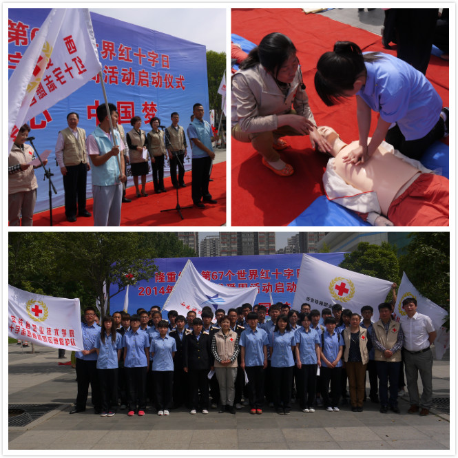 5月8日是第67个世界红十字会日,为纪念这一特殊的日子,陕西省红十字会联合西安市红十字会和未央区红十字会共同举办了以“人道心,中国梦”为主题的纪念活动。作为承办单位之一,我院50名红十字会学生分会的救护队成员和学生干部在院团委李屹欧老师的带领下,赴西安城市运动公园参加2014年红十字会博爱周活动启动仪式。