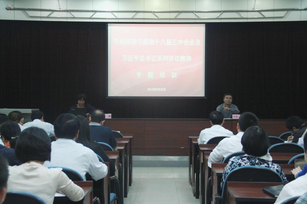 按照省、市委要求及学院开展学习贯彻十八届三中全会精神和习近平总书记系列讲话集中轮训安排,5月20日,学院邀请西安市委党校教师李娜作题为《倡导生态文明 建设美丽中国》的专题辅导讲座。学院党委书记安文中出席,党委副书记、纪委书记黄家昌主持。