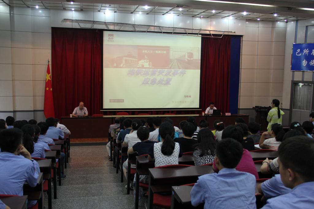 报告会上,刘峻峰围绕西安地铁公司突发事件应急体系及各类突发事件处理情况,系统介绍了国内外常见地铁突发事件和应急处置原则;结合自身在地铁工作的经历和行业内见闻,着重从媒体应对、爆炸、火灾、屏蔽门故障、供电设备故障、信号设备故障、列车晚点、大客流等七个方面论述了运营突发事件处置的要点;用大量生动的现场图片和完整的地铁运营案例,从正反两个方面分析了国内外诸多典型的地铁突发事件应对举措及影响。