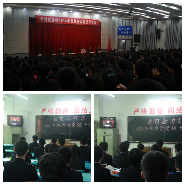 经过认真筹备,学院党校2014年秋季培训班于10月15日起相继在院本部、龙首校区、临潼校区分三场举行了隆重的开学典礼。党委副书记、纪委书记兼党校校长黄家昌,组织部部长兼党校副校长任治军,分党校校长李栋、张伟敏、任建国、和晋秦、张雅兰、张国邦、郭小莉等同志参加了开学典礼。