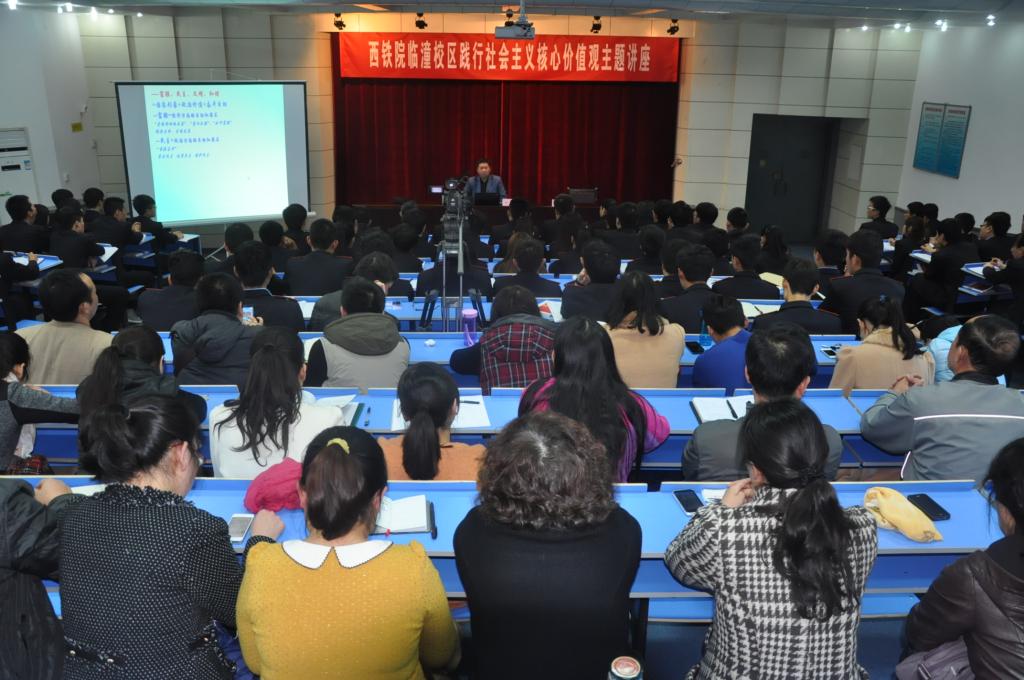 通过讲座,临潼校区将进一步凝聚全体师生集体智慧与力量,充分利用好校园文化与主题实践两大活动载体,组织更多内容丰富、寓意深刻的社会主义核心价值观宣传活动。同时,校区在德育课、团课等活动中,将向全体学生对本次讲座进行录影展播,使践行社会主义核心价值观主题教育活动有效融入到校园师生道德实践和优秀文化成果建设体系当中,多措并举的营造出践行社会主义核心价值观的良好校园宣传教育氛围,并为全面推进校区社会主义核心价值观体系建设奠定坚实基础。(临潼校区 蒋博文供稿)